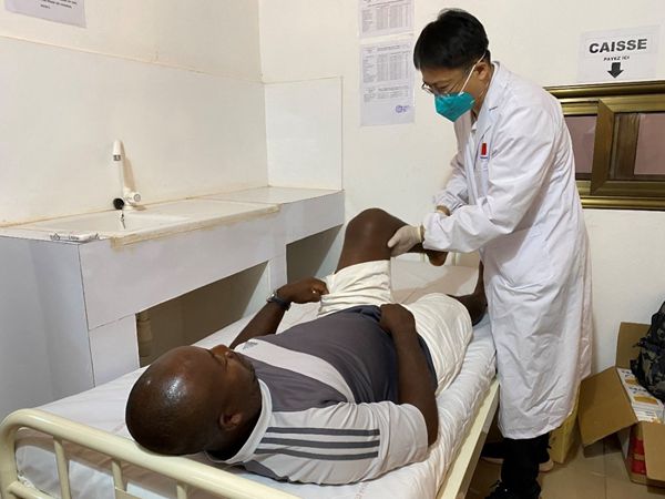 中国第25批援多哥医疗队近日在该国沃省巴杜贝村卫生所开展义诊活动。